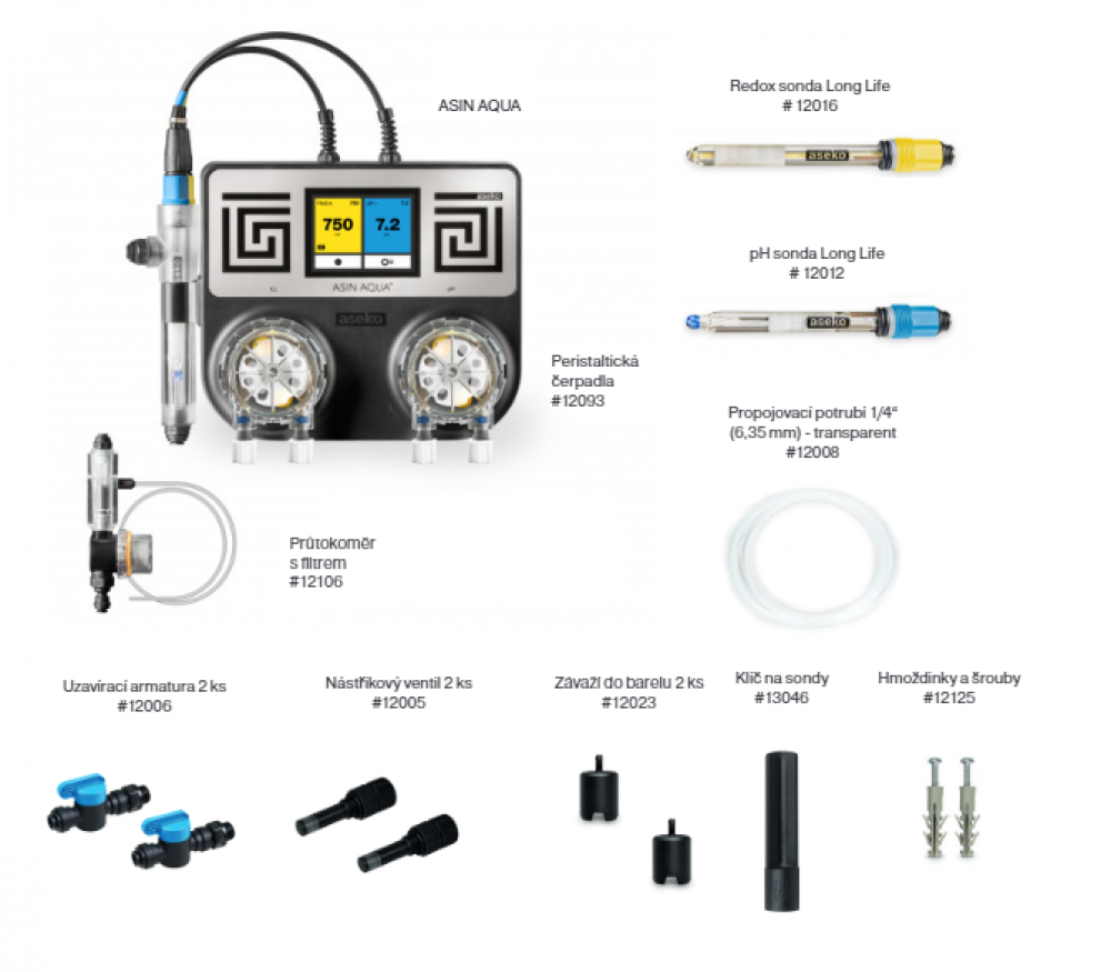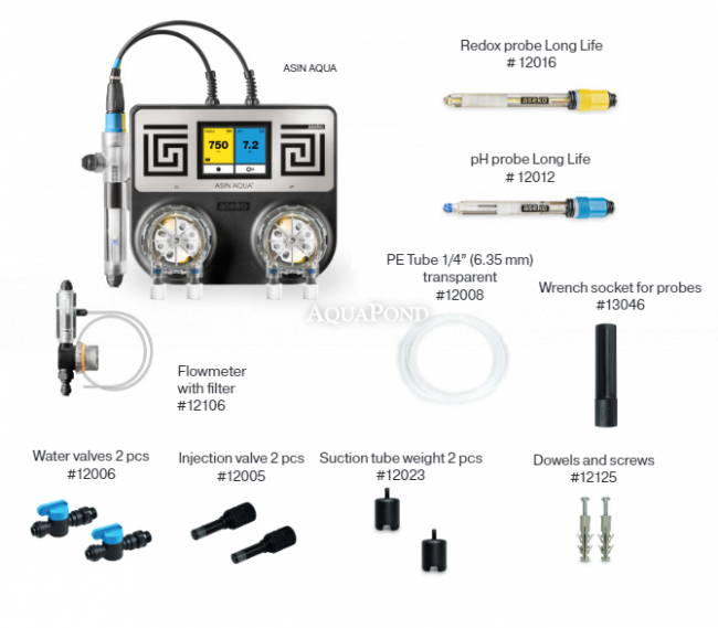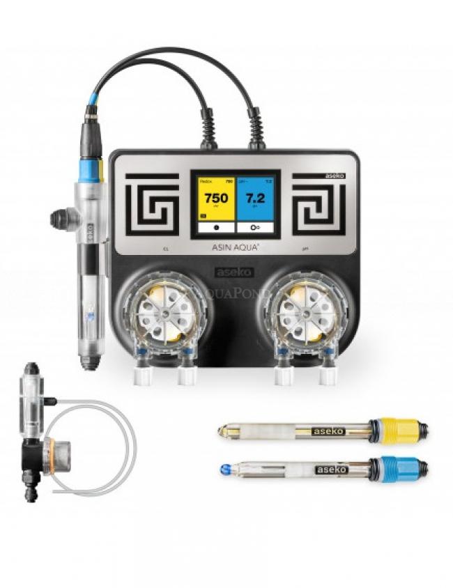 Asin Aqua Redox misura e regola automaticamente la quantità dosata di pH e cloro nella piscina mediante sonde.