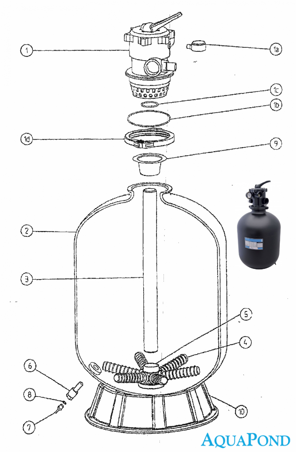 Contenitore filtro AZUR 380 senza pallet incl. la valvola superiore è adatta per una pompa con una capacità di 6 m 3 / h.