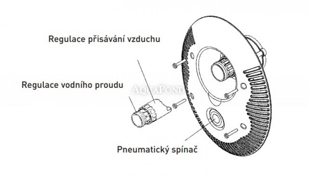 Questa controcorrente incorporata è predisposta per un`installazione molto semplice. Nell`apparecchio è possibile regolare l`intensità del flusso d`acqua e dell`aspirazione dell`aria, il tutto tramite l`ugello dal diametro di 40 mm, anch`esso regolabile in direzione. Questo ugello si trova insieme all`aspirazione e all`interruttore pneumatico nel coperchio anteriore dell`apparecchio.