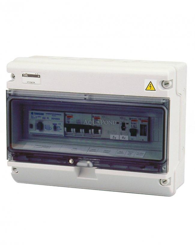 Il dispositivo include un protettore di corrente 30 mA, interruttore - autom. / Modalità di funzionamento filtraggio manuale, orologio di commutazione, fusibile filtrazione 3f, fusibile luci piscina, fusibile alimentazione controcorrente, termostato elettronico digitale con spia compreso sensore di temperatura, fusibile e interruttore pompa di circolazione o el. valvola o caldaia a gas. Impostazione della temperatura desiderata dell`acqua della piscina direttamente nel centralino.
