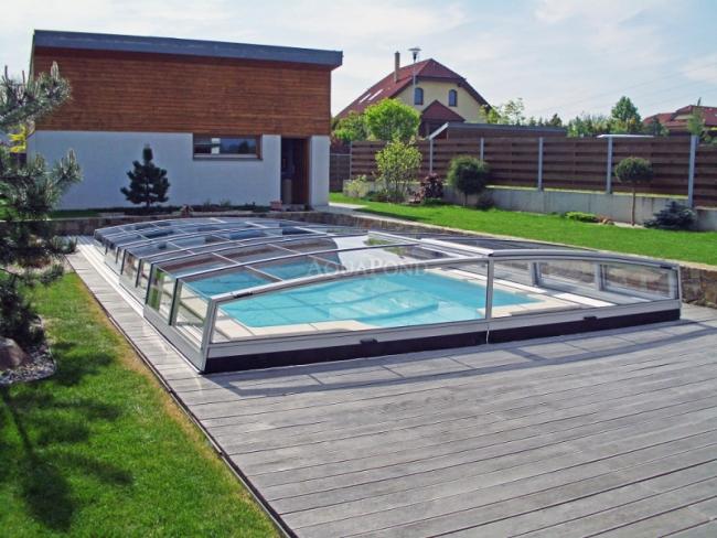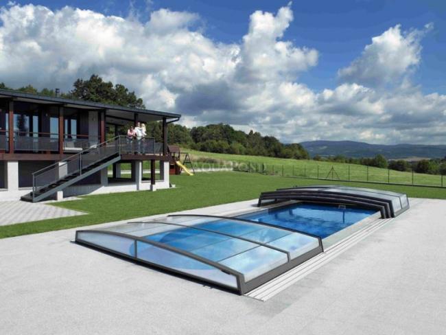 Così potrai goderti il nuoto anche in caso di maltempo, con un tetto completamente chiuso che si fonde perfettamente con il tuo giardino.