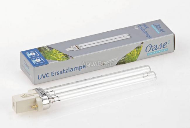 Lampadina UVC di marca di alta qualità Oase. L`efficacia dei raggi UV diminuisce rapidamente dopo 6000 ore di utilizzo - la lampadina emette luce, ma non più raggi UV - quindi consuma inutilmente elettricità, ma non ha più alcun effetto sulle alghe unicellulari. La lampada UV cambia ogni anno.