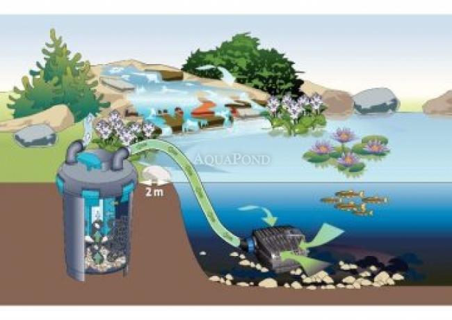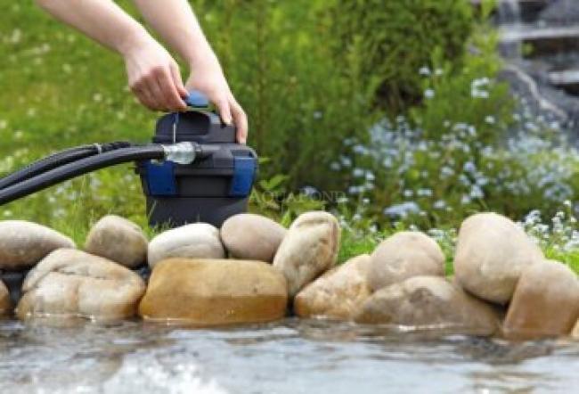 Grazie alla combinazione ideale di filtro, pompa e tecnologia UVC, garantisce un`acqua cristallina. Il filtro a pressione è caratterizzato da facile manutenzione, design semplice e affidabile, alta efficienza e basso consumo energetico. Manutenzione estremamente semplice grazie alla funzione di pulizia brevettata nel coperchio. Grazie al fatto di essere sepolto nel terreno, è quasi invisibile. Adatto per laghetti fino a 4 m 3 . Un set composto da un filtro a pressione BioPress con lampada UVC integrata da 7 W e una pompa adatta con una potenza di 2500 l / h.