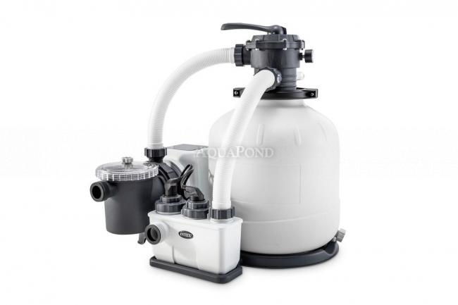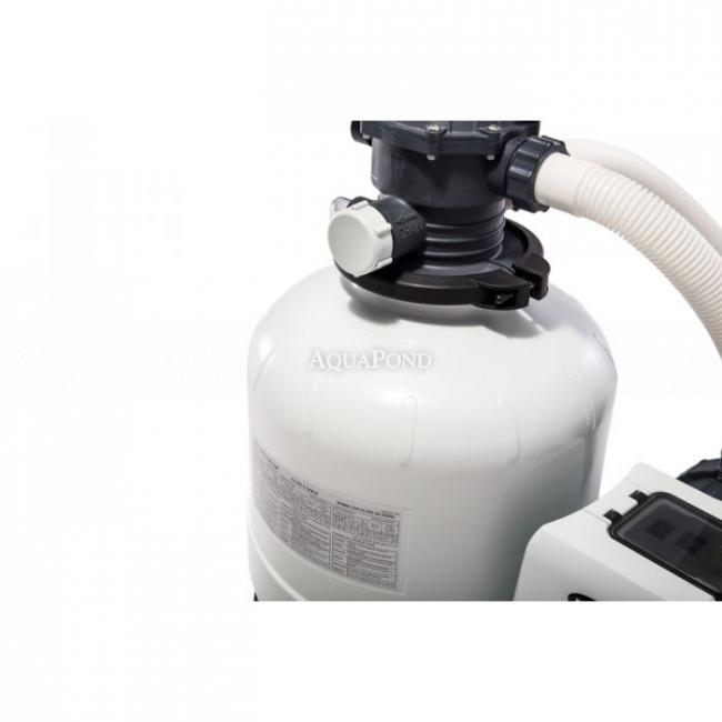 Filtro a sabbia con pompa e solinatore della marca Intex. Serbatoio di dimensione 410 mm con resistenza alla possibile corrosione. La portata massima attraverso la pompa è di 10 m 3 / h, mentre il valore dell`intero sistema è di 8 m 3 / h. La capacità massima della sabbia raggiunge i 55 kg. Per il collegamento a tubi da 32 o 38 mm, è necessario acquistare un adattatore di riduzione - Adattatore A. Il cloratore con sistema di elettrolisi del sale integrato riduce la quantità di cloro necessaria fino al 70%. La pompa di filtraggio è dotata di un timer con l`aiuto del quale è possibile impostare l`avvio automatico del filtraggio ogni giorno all`ora desiderata. Il solinatore integrato nella filtrazione ha una produzione di cloro gassoso di 11 g/h.