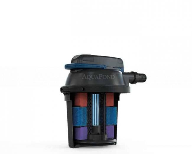 Filtro a pressione FiltoClear 13000 con lampada UV integrata da 24 Watt. Garantisce in modo rapido ed efficace il godimento di acqua pulita nel laghetto. L`acqua inquinata dello stagno viene pompata in un sistema ermeticamente chiuso: un recipiente a pressione. Può essere completamente interrato o posizionato sopra la cascata.Il filtro ha una comoda pulizia senza la necessità di aprire il filtro grazie alla tecnologia brevettata Easy-Clean. Il filtro può essere facilmente mascherato vicino al laghetto interrandolo nel terreno e ricoprendolo con FiltoCap grigio pietra. Il filtro è ideale per alimentare piccoli ruscelli, cascatelle e cascatelle. Durante la pulizia del filtro, le spugne vengono spremute utilizzando la maniglia sulla parte superiore del filtro, attivando la valvola Easy-Clean, l`acqua che scorre lava via lo sporco dal filtro. Include un semplice monitoraggio del flusso d`acqua, dell`intasamento del filtro e dell`attività UVC. Dimensioni compatte che offrono prestazioni elevate: un`ottima soluzione per laghetti con spazio limitato. Realizzato in materiale durevole e di alta qualità.