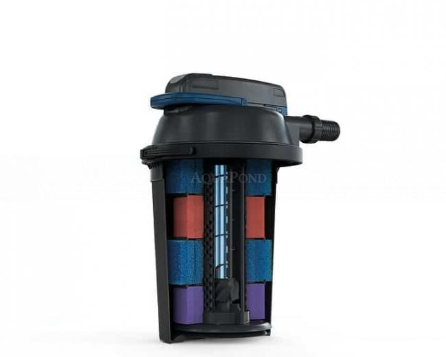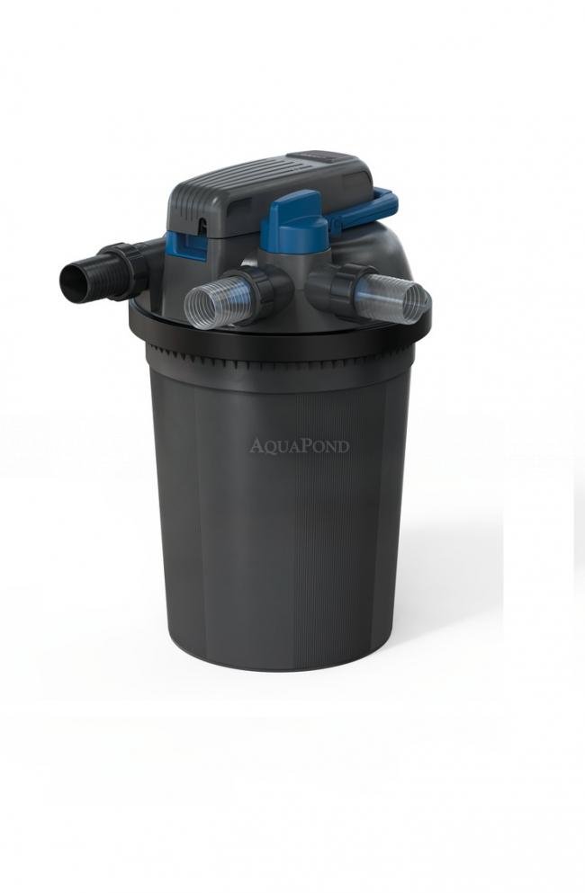 Filtro a pressione FiltoClear 19000 con lampada UV integrata da 42 Watt. Garantisce in modo rapido ed efficace il godimento di acqua pulita nel laghetto. L`acqua inquinata dello stagno viene pompata in un sistema ermeticamente chiuso: un recipiente a pressione. Può essere completamente interrato o posizionato sopra la cascata.Il filtro ha una comoda pulizia senza la necessità di aprire il filtro grazie alla tecnologia brevettata Easy-Clean. Il filtro può essere facilmente mascherato vicino al laghetto interrandolo nel terreno e ricoprendolo con FiltoCap grigio pietra. Il filtro è ideale per alimentare piccoli ruscelli, cascatelle e cascatelle. Durante la pulizia del filtro, le spugne vengono spremute utilizzando la maniglia sulla parte superiore del filtro, attivando la valvola Easy-Clean, l`acqua che scorre lava via lo sporco dal filtro. Include un semplice monitoraggio del flusso d`acqua, dell`intasamento del filtro e dell`attività UVC. Dimensioni compatte che offrono prestazioni elevate: un`ottima soluzione per laghetti con spazio limitato. Realizzato in materiale durevole e di alta qualità.