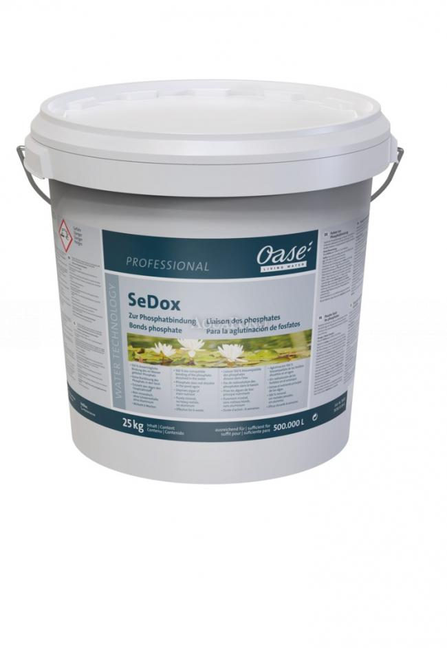 SeDox converte il fosfato, il nutriente più importante per le alghe, nell`apatite minerale insolubile presente nell`acqua, privando le alghe dei nutrienti. È particolarmente delicato su piante e animali, agisce in modo naturale grazie all`azione dei microrganismi. SeDox è la soluzione migliore per i casi critici in cui è richiesto uno sgancio rapido. Per quanto riguarda l`ubicazione, è preferibile trovarsi in prossimità di un corso d`acqua, ad esempio: filtri, ruscelli artificiali, ecc. In questo modo si impedisce la crescita eccessiva di alghe. SeDox dovrebbe essere usato regolarmente, cioè ogni 6-8 settimane. Trascorso questo periodo, il principio attivo si decompone in acqua. Entro sei settimane, finché SeDox sarà efficace, il contenuto di fosfati sarà ridotto a meno di 0,035 mg/l, che è il valore critico per la crescita eccessiva di alghe. Per 6-8 settimane, finché la sostanza è efficace, SeDox non deve essere rimosso dallo stagno. Altrimenti il contenuto di fosfati non può essere ridotto ad un valore inferiore a 0,035 mg/l. L`apatite risultante non è dannosa per i pesci o altri organismi viventi. Viene assorbito come nutriente attraverso le radici delle piante acquatiche.