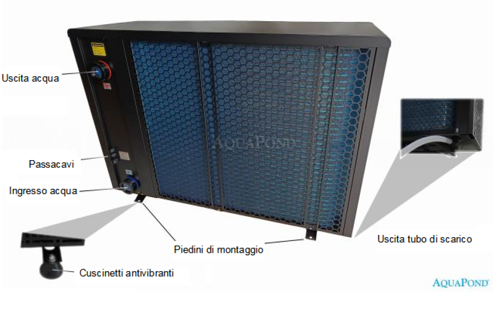 - funziona fino a -20°C, solo se l`acqua circola nella pompa di calore 24 ore su 24, 7 giorni su 7 (tutti i giorni della settimana, ogni ora)