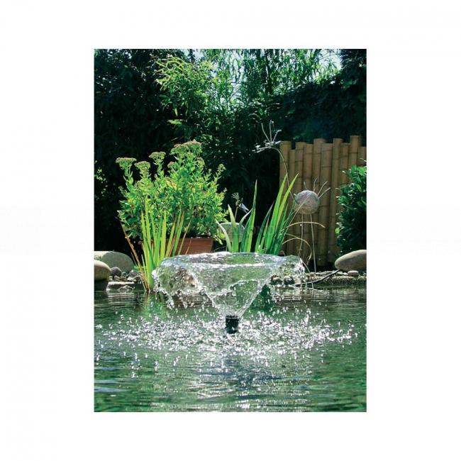 Pompa per fontana PondoVario 1500, adatta per l`uso in ruscelli più piccoli e laghetti da giardino. Attacco ugello telescopico mobile, con quattro ugelli nelle forme: vulcano, raggi, campana, calice. Vulcano - altezza del ruscello 140 cm, diametro del ruscello 140 cm. Travi - altezza getto 70 cm, diametro getto 100 cm. Campana - altezza del ruscello 70 cm, diametro del ruscello 35 cm. Calice - altezza del ruscello 70 cm, diametro del ruscello 30 cm. Foro rimovibile per filtraggio fine. Attacchi per tubi regolabili con filettatura 1/2", 3/4", 1". Protezione contro il surriscaldamento.