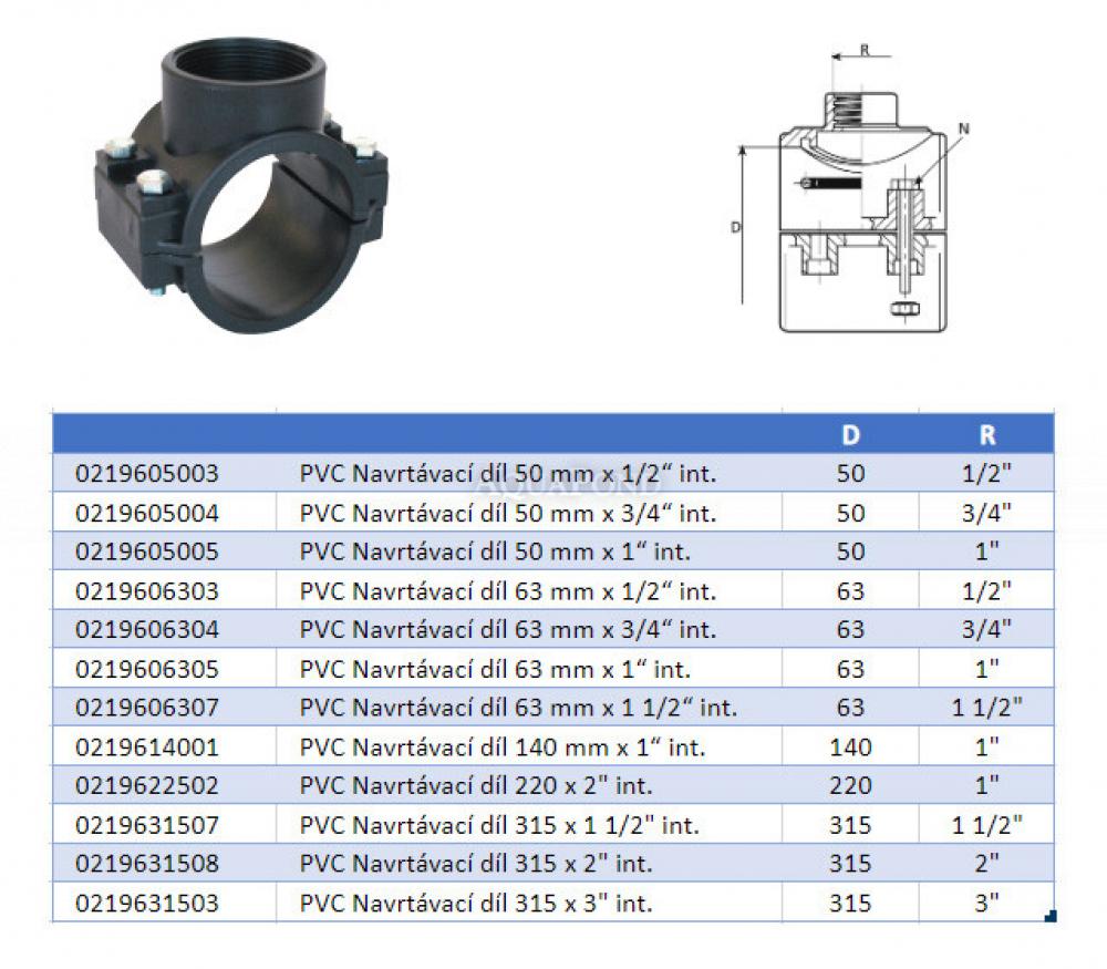 La parte di perforazione ha una filettatura interna nella parte superiore, nella quale possono essere avvitati direttamente un sensore di temperatura, una sonda, un iniettore per il dosaggio dei prodotti chimici per piscine, per i sistemi automatici per piscine e altre parti filettate per piscine. Se è necessario ridurre il filo superiore, utilizzare riduttori corti in PVC che abbiano sia un filetto interno che uno esterno.