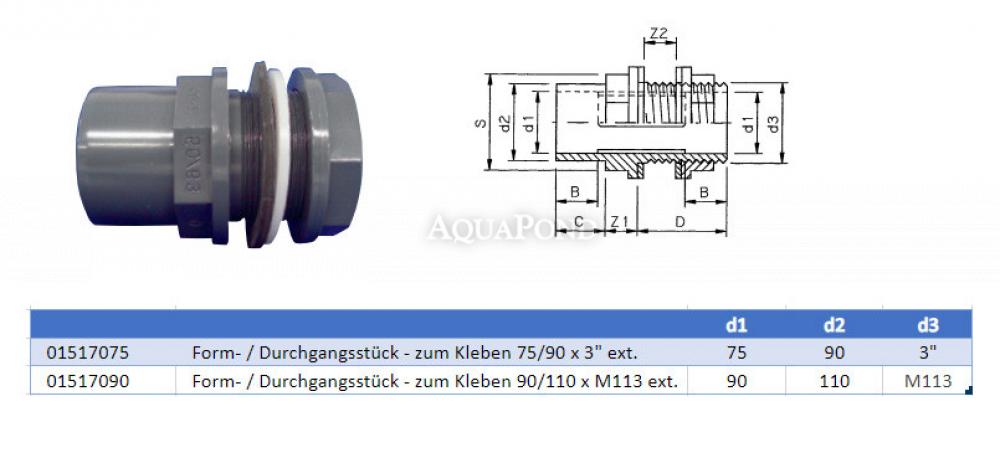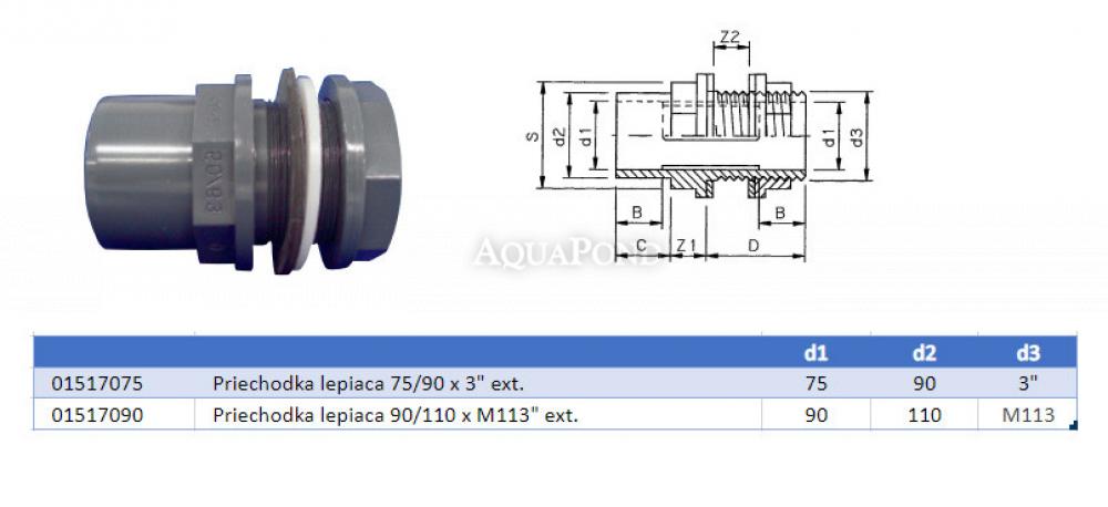Raccordo in PVC - Passacavo adesivo 75/90 x 3" est., incollaggio/filettatura esterna