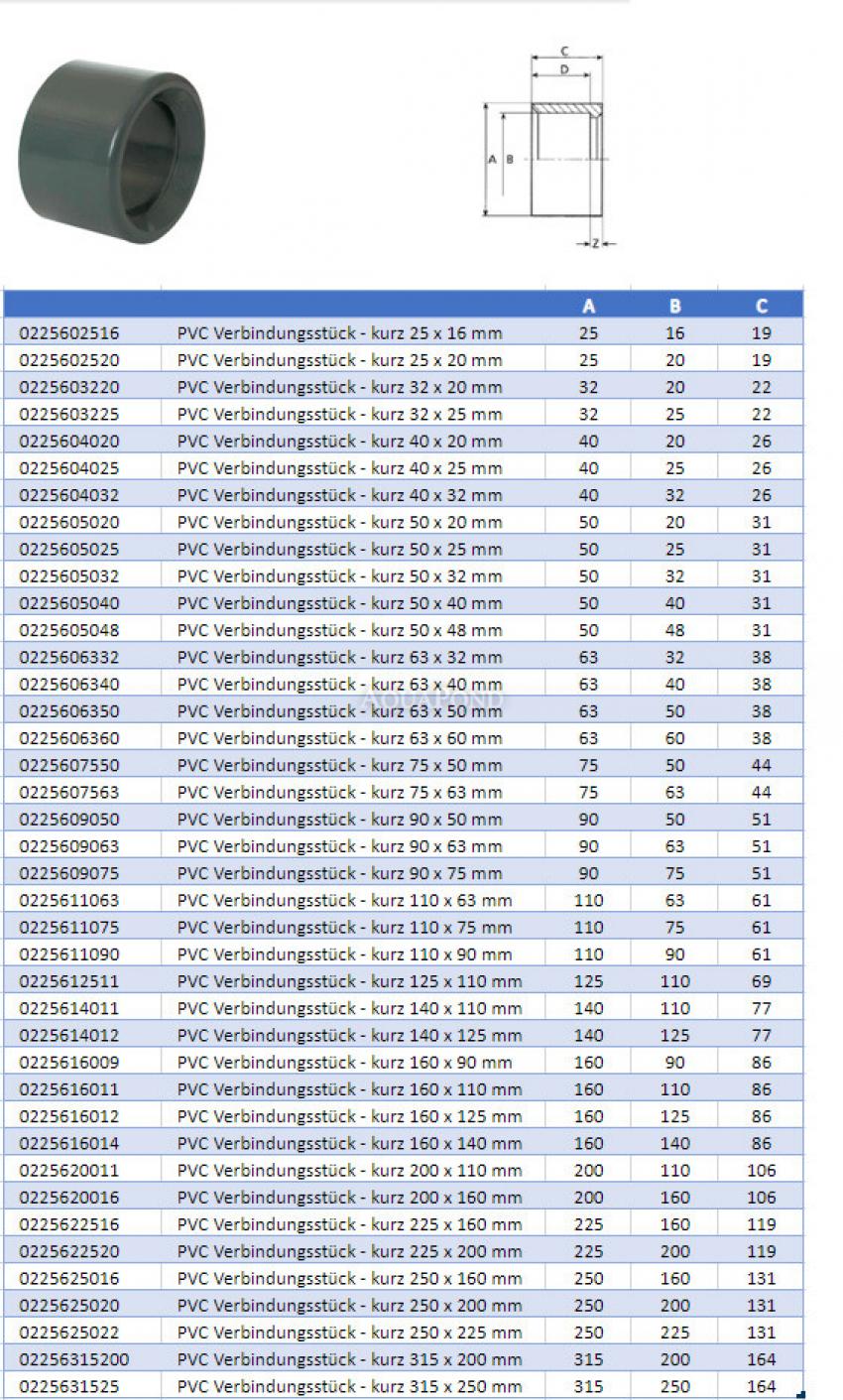 Breve riduzione del PVC; connessione - incollaggio; colore: grigio Leggi di più