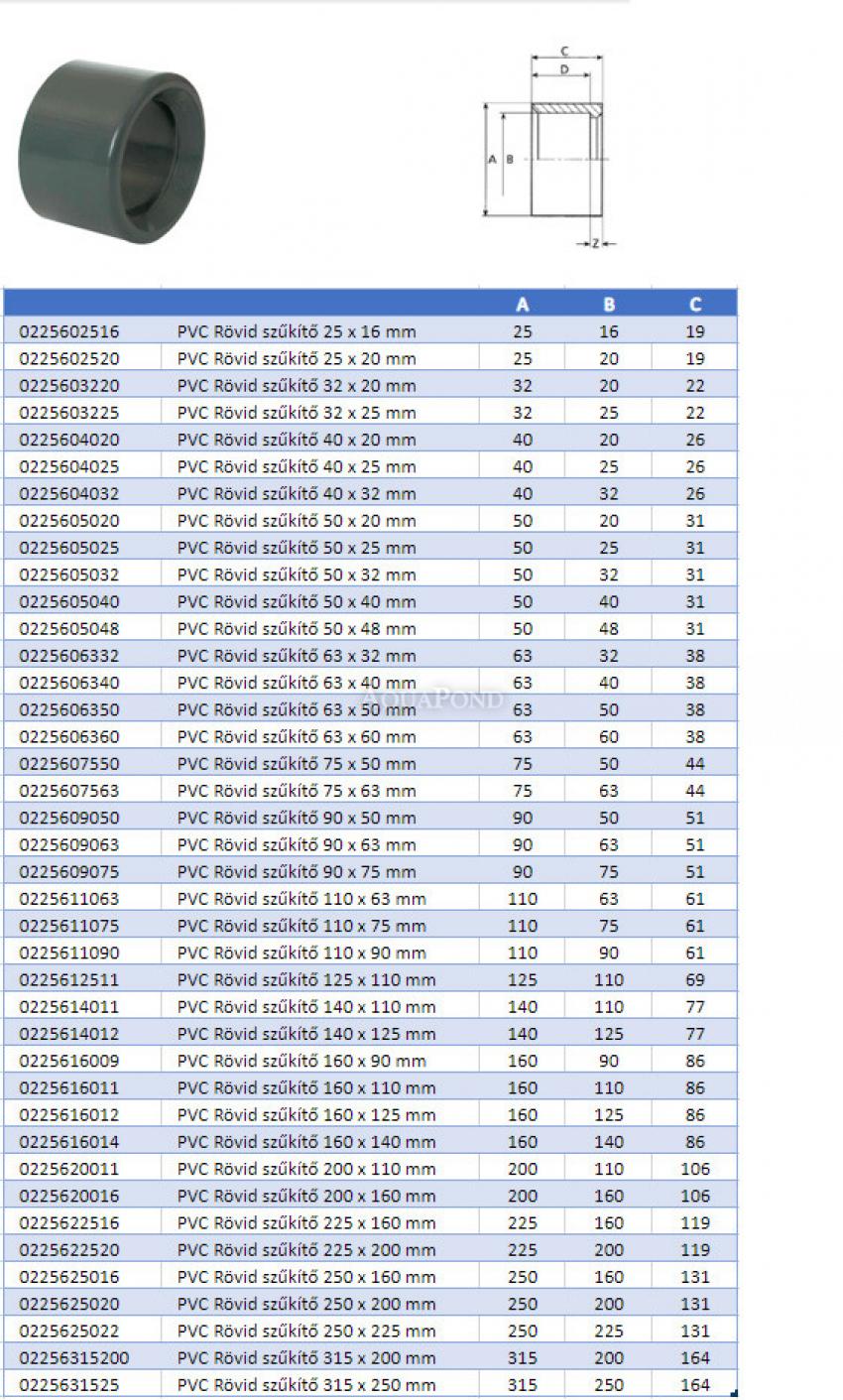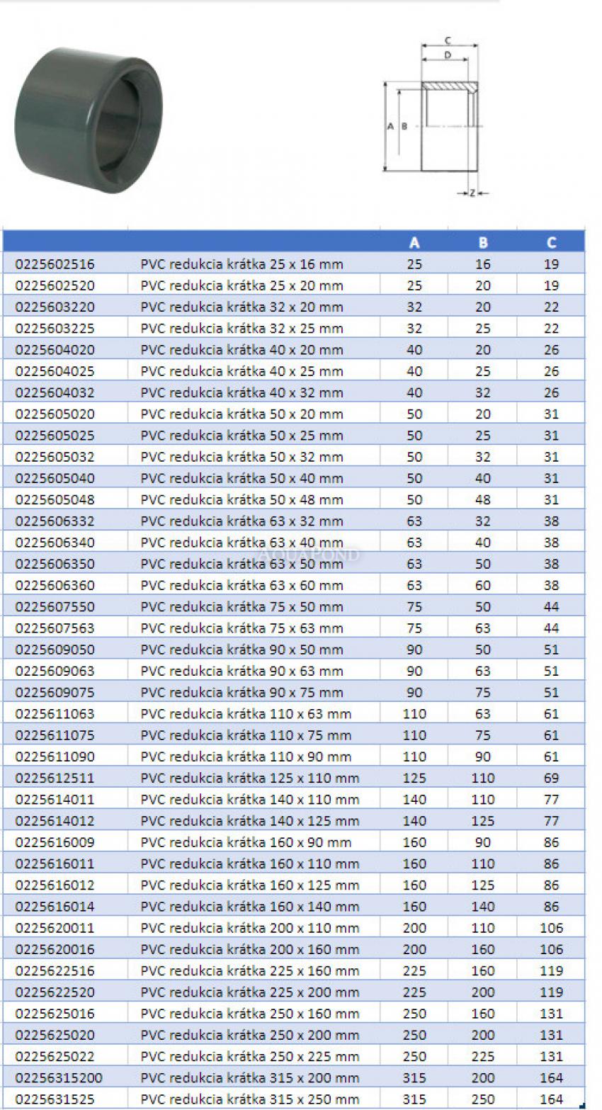 Raccordo in PVC - Riduzione corta 225 x 160 mm